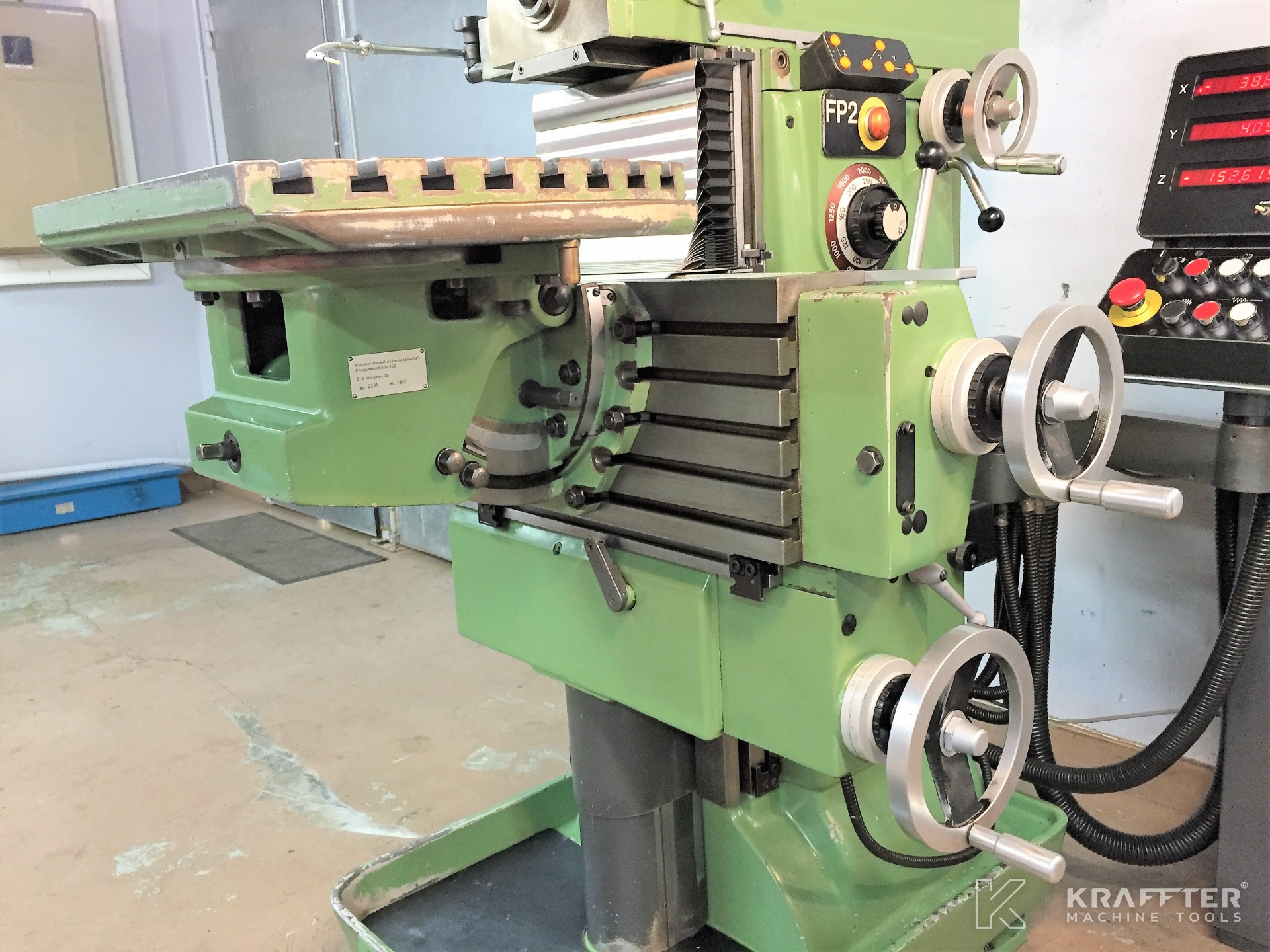 - Possibilité de fournir de l’outillage DECKEL en supplément : étaux, cônes, pinces, têtes à aléser, microscope de centrage, douilles de réduction, fraises, tourteaux…